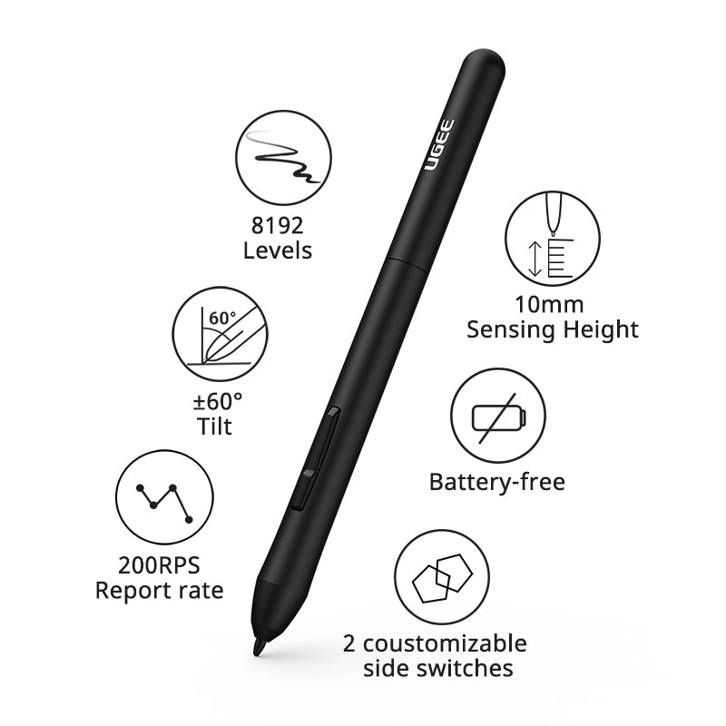 ugee S640 stylus does not require batteries or charging. no clumsy cords or extra costs, allowing you draw and create with ease.